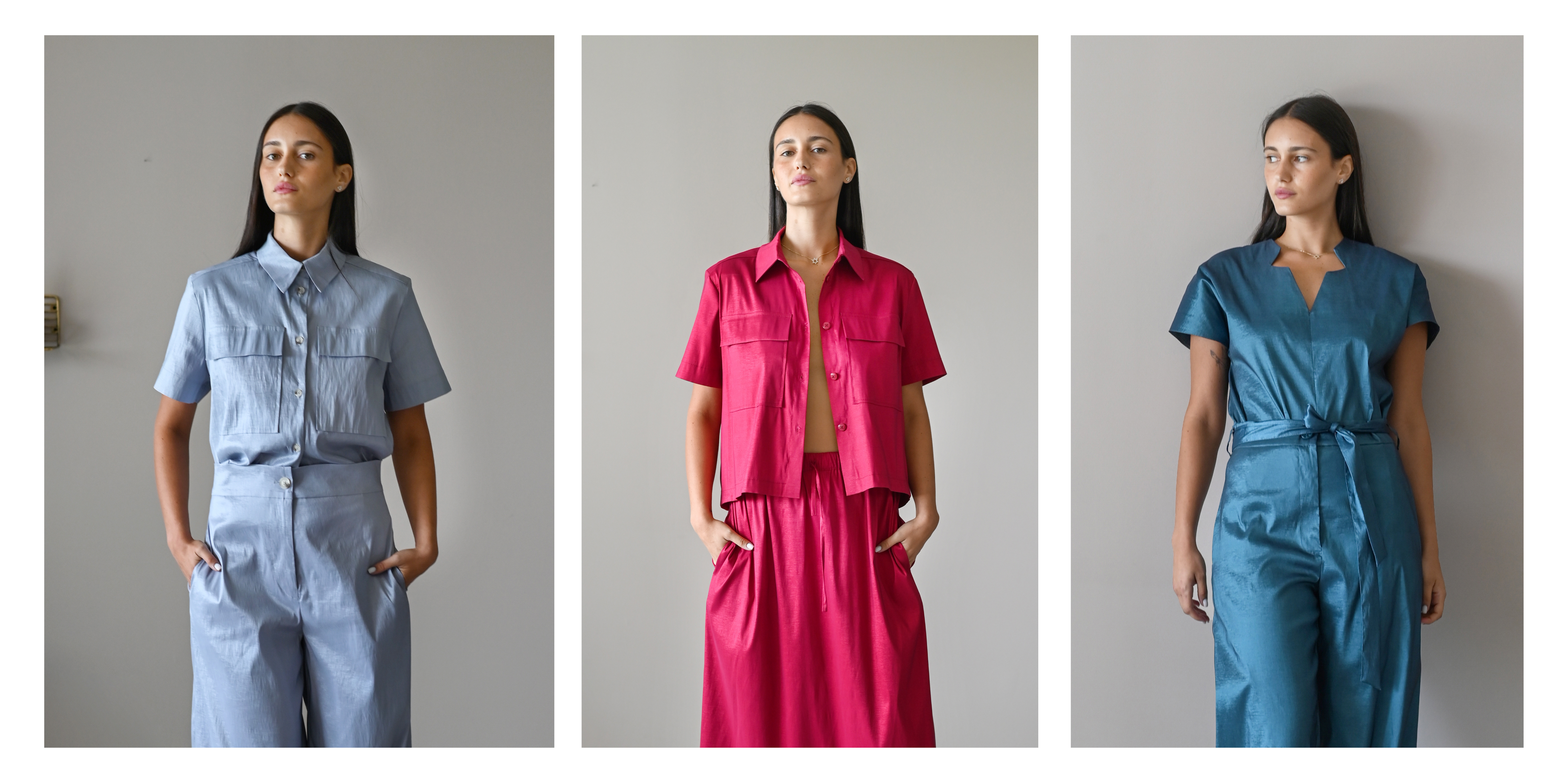 תמצאי כאן שמלות, אוברולים, חליפות ועליוניות - כולם נתפרו מתוך מחשבה עמוקה על תנועה, נוחות וסטייל אישי.